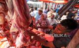 Warga memadati pasar untuk membeli daging sapi pada perayaan tradisi Meugang Ramadhan 1443 Hijriah di Lhokseumawe, Aceh. Jumat (1/4/2022). Perayaan Meugang merupakan tradisi membeli daging sapi tanpa perbedaan kaya dan miskin, lalu dimasak sebagai hidangan istimewa keluarga yang dilaksanakan tiga kali dalam setahun, yakni datangnya Ramadhan, Hari Raya Idul Fitri, dan Idul Adha. (FOTO : ANTARA/Rahmad)