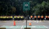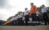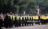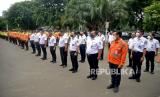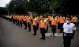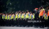 Para peserta mengikuti apel gelar pasukan pengamanan dan antisipasi premanisme di lingkungan stasiun kereta api Indonesia dalam rangka operasi angkutan lebaran tahun 2022 di Stasiun Gambir, Jakarta, Jumat (1/4/2022). Apel yang diikuti staf PT KAI, personel Polsuska, TNI, Polri, Satuan Pengamanan, hingga K9 tersebut dalam rangka meningkatan pelayanan kepada penumpang termasuk ketertiban, keamanan dan keselamatan penumpang serta fokus terhadap pemberantasan premanisme dan vandalisme di lingkungan stasiun. (FOTO : Prayogi/Republika.)