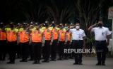 REPUBLIKA.CO.ID,JAKARTA -- Para peserta mengikuti apel gelar pasukan pengamanan dan antisipasi premanisme di lingkungan stasiun kereta api Indonesia dalam rangka operasi angkutan lebaran tahun 2022 di Stasiun Gambir, Jakarta, Jumat (1/4/2022).