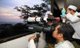 REPUBLIKA.CO.ID,GRESIK -- Tim falakiyah Pengurus Cabang Nahdlatul Ulama (PCNU) Gresik mengamati posisi hilal menggunakan theodolit di Bukit Condrodipo, Gresik, Jawa Timur, Jumat (1/4/2022).