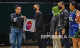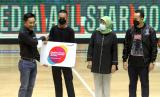 REPUBLIKA.CO.ID,JAKARTA -- Director & Chief Human Resources Indosat Ooredoo Hutchison Irsyad Sahroni secara simbolis menyerahkan bantuan kepada Kapten Tim Basket SMKN 53 Jakarta Barat Rahmat Hidayat disaksikan Wakil Kepala Sekolah Kesiswaan SMKN 53 Jakarta Barat Nuzulurrofiah dan Direktur Utama Indonesian Basketball League/IBL Junas Miradiarsyah (kedua kanan) saat meluncurkan program pelatihan talenta basket ke Sekolah saat IBL All Star 2022 di Hall Basket Senayan, Jakarta, Kamis (31/3/2022).