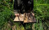 Tim monitoring Gajah Sumatra (Elephas maximus sumatranus) PT Restorasi Ekosistem Indonesia (REKI) menunjukkan ranjau paku yang ditemukan di koridor gajah kawasan sekitar Hutan Harapan, Sarolangun, Jambi, Jumat (1/4/2022). Monitoring rutin selama 1-2 minggu di hutan dataran rendah dan sekitarnya yang menjadi rumah bagi delapan ekor Gajah Sumatra itu bertujuan memantau pergerakan gajah, mengantisipasi perburuan liar, dan sekaligus upaya mitigasi konflik. (FOTO : ANTARA/Wahdi Septiawan)