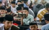 REPUBLIKA.CO.ID, MEDAN -- Santri membaca Al Quran di Pondok Pesantren Ar-Raudhatul Hasanah Medan, Sumatera Utara, Senin (4/4/2022). Kegiatan yang diikuti ribuan santri tersebut merupakan agenda rutin yang dilaksanakan pada bulan suci Ramadhan.