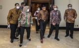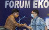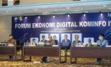 REPUBLIKA.CO.ID, JAKARTA -- Menteri Komunikasi dan Informatika Johnny G. Plate (kiri) berjabat tangan dengan Wakil Menteri Perdagangan Jerry Sambuaga (kanan) saat menghadiri acara Forum Ekonomi Digital Kominfo IV, di Jakarta, Senin (4/4/2022). Dalam acara tersebut secara khusus membicarakan tentang hubungan platfrom digital atas produk-produk lokal, sehingga diharapkan e-commerce akan diisi lebih banyak lagi produk buatan dalam negeri. ANTARA FOTO/Muhammad Adimaja