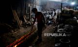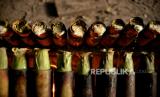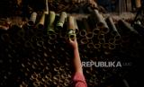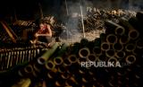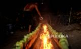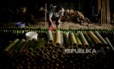 Pekerja menyelesaikan pembuatan lamang tapai di kawasan Senen, Jakarta Pusat, Selasa (5/4/2022). Makanan yang terbuat dari bahan dasar ketan dan santan tersebut merupakan penganan khas Sumatera Barat. Proses memasak lamang tapai terbilang unik dengan menggunakan kayu sebagai bahan pembakar dan cetakan bambu yang dilapisi daun pisang diisi bahan dasar lamang tapai. Lamang tapai menjadi salah satu makanan tradisional yang sering dijumpai saat bulan suci Ramadhan, hal tersebut diakui oleh salah satu pedagang lamang tapai di kawasan Senen yang mengalami kenaikan jumlah permintaan hingga 3 kali lipat pada bulan suci Ramadhan kali ini atau 300 buah dalam sehari dan jika hari biasa jumlah pesanan sekitar 100 buah . (FOTO : Republika/Thoudy Badai)