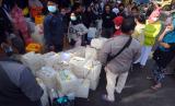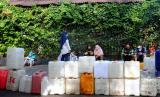 Warga menaruh jeriken saat antre membeli minyak goreng curah bersubsidi di salah satu distributor minyak goreng curah, Kelurahan Sindangbarang, Kota Bogor, Jawa Barat, Selasa (5/4/2022). Antrean yang didominasi para pedagang makanan dan gorengan tersebut telah berlangsung selama dua pekan akibat sulitnya mendapatkan minyak goreng curah bersubsidi yang dijual dengan harga Rp15.500 per kilogram dan dibatasi hanya untuk dua jeriken atau 32 kilogram. (FOTO : ANTARA/Arif Firmansyah)