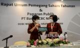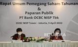 REPUBLIKA.CO.ID, JAKARTA -- Presiden Direktur PT. Bank OCBC NISP Tbk Parwati Surjaudaja (kiri) didampingi dengan Direktur PT Bank OCBC NISP Tbk Hartati (kanan) saat Rapat Umum Pemegang Saham Tahunan (RUPST) PT Bank OCBC NISP Tbk di Jakarta, Selasa (5/4/2022). Dalam RUPST PT Bank OCBC NISP Tbk tersebut disepakati membagikan dividen untuk tahun buku 2021 senilai Rp504 miliar atau Rp22 per saham kepada para investor.