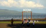 Pengunjung menikmati suasana sore hari di Pantai Marina Boom, Banyuwangi, Jawa Timur, Selasa (5/4/2022). Sebagian umat muslim di Banyuwangi memilih untuk menunggu waktu berbuka puasa sambil berwisata. (FOTO : Antara/Budi Candra Setya)