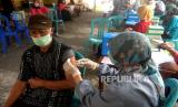 REPUBLIKA.CO.ID,YOGYAKARTA -- Warga mengikuti vaksinasi Covid-19 di Mushola Al Hidayah, Pakem, Sleman, Yogyakarta, Rabu (6/4/2022).