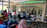 Warga menunggu vaksinasi Covid-19 di Mushola Al Hidayah, Pakem, Sleman, Yogyakarta, Rabu (6/4/2022). Pemkab Sleman mengadakan vaksinasi keliling dari masjid ke masjid selama Ramadhan. Sebanyak 500 dosis vaksin disiapkan untuk setiap masjid. Vaksinasi Covid-19 ini bisa untuk vaksin booster, dosis 1, atau dosis 2. (FOTO : Wihdan Hidayat / Republika)