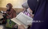 REPUBLIKA.CO.ID,BANDUNG -- Sejumlah warga lanjut usia (lansia) membaca Alquran saat mengikuti Pesantren Ramadhan Lansia di Masjid Pusdai, Kota Bandung, Rabu (6/4/2022).
