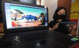 REPUBLIKA.CO.ID,SALATIGA -- Seorang pekerja mencoba aplikasi digital interaktif bertema Islami di Educa Studio, Salatiga, Jawa Tengah, Rabu (6/4/2022).
