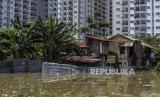 Perumahan warga di RT 04 dan 05 terendam air karena tersumbatnya aliran saluran air..