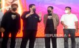 (dari kiri) Direktur Utama Telkomsel Hendri Mulya Syam, Menteri BUMN Erick Thohir, Dirut Bank Mandiri Darmawan Junaidi dan Dirut Telkom Indonesia Ririek Adriansyah berbincang saat peluncuran voucer fisik internet telkomsel dan kartu E-money mandiri dengan desain edisi karakter Bumilangit di Jakarta, Selasa (6/4/2022). Sinergi bersama ini menjadi komitmen nyata dalam mendukung pengembangan industri kreatif di Indonesia. (FOTO : Prayogi/Republika.)