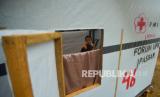 Seorang anak penyintas gempa bermagnitudo 6,1 berada di hunian sementara (huntara) di Nagari Kajai, Kabupaten Pasaman Barat, Sumatera Barat, Rabu (6/4/20220. Data BPBD Pasaman Barat, kebutuhan huntara bagi penyintas gempa yang rumahnya rusak berat yakni sebanyak 1.338 unit, sementara baru dibangun 283 unit berasal dari bantuan PMI, relawan, lembaga peduli kemanusiaan dan partai politik.  (FOTO : Antara/Iggoy el Fitra)