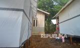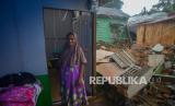 Seorang warga penyintas gempa bermagnitudo 6,1 berada di depan hunian sementara (huntara) yang dibangun di depan rumahnya yang hancur, di Nagari Aua Kuniang, Kabupaten Pasaman Barat, Sumatera Barat, Rabu (6/4/20220. Data BPBD Pasaman Barat, kebutuhan huntara bagi penyintas gempa yang rumahnya rusak berat yakni sebanyak 1.338 unit, sementara baru dibangun 283 unit berasal dari bantuan PMI, relawan, lembaga peduli kemanusiaan dan partai politik.  (FOTO : Antara/Iggoy el Fitra)
