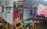 Warga penyintas gempa bermagnitudo 6,1 berada di hunian sementara (huntara) di Nagari Kajai, Kabupaten Pasaman Barat, Sumatera Barat, Rabu (6/4/20220. Data BPBD Pasaman Barat, kebutuhan huntara bagi penyintas gempa yang rumahnya rusak berat yakni sebanyak 1.338 unit, sementara baru dibangun 283 unit berasal dari bantuan PMI, relawan, lembaga peduli kemanusiaan dan partai politik. (FOTO : Antara/Iggoy el Fitra)