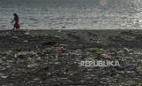 REPUBLIKA.CO.ID, MATARAM -- Warga berjalan di pinggir Pantai Loang Baloq, Tanjung Karang, Mataram, NTB, Rabu (6/4/2022). Pantai yang lokasinya berdekatan dengan muara Sungai Taman Loang Baloq tersebut dipenuhi sampah yang sebagian besar terdiri dari sampah plastik.