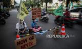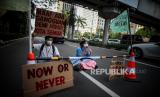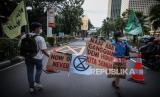 REPUBLIKA.CO.ID, Aktivis lingkungan melakukan aksi blokade di Jalan Asia-Afrika, Senayan, Jakarta, Rabu (6/4/2023). Aksi tersebut menuntut pemerintah untuk mendeklarasikan darurat iklim sebegai bentuk keseriusan menangani masalah iklim yang nyata dan semakin parah.