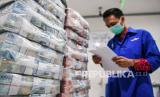 Pegawai mengecek uang tunai pecahan Rp100 ribu dan Rp50 ribu yang akan dikirimkan ke kantor cabang di Sentra Kas Bank Mandiri, Jakarta, Rabu (6/4/2022). PT Bank Mandiri (Persero) Tbk menyiapkan kebutuhan uang tunai sebanyak Rp1,75 triliun per hari di masyarakat selama 28 hari ke depan hingga 3 Mei mendatang terhitung periode bulan Ramadhan dan jelang Hari Raya Idul Fitri 2022 yang meningkat sekitar 19 persen dari periode yang sama pada tahun lalu. (FOTO : Antara/M Risyal Hidayat)