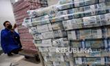 REPUBLIKA.CO.ID, JAKARTA -- Pegawai menata uang tunai pecahan Rp50 ribu yang akan dikirimkan ke kantor cabang di Sentra Kas Bank Mandiri, Jakarta, Rabu (6/4/2022). PT Bank Mandiri (Persero) Tbk meningkatkan pasokan uang tunai antara lain untuk pengisian mesin ATM sebanyak Rp1,75 triliun per hari pada periode bulan Ramadhan dan jelang Hari Raya Idul Fitri 2022, yang meningkat sekitar 13 persen dari rata-rata harian pada periode yang sama tahun lalu.