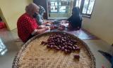 Geliat produksi ‘torakur’ (tomat rasa kurma) warga di Dusun Ampelgading, Desa Kenteng, Kecamatan Bandungan, Kabupaten Semarang, Kamis (7/4). UMKM oleh- oleh khas Bandungan ini bergairah menyambut Ramadhan dan Lebaran tahun 2022 ini. (FOTO : Republika/Bowo Pribadi)