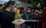 Warga menerima hidangan berbuka puasa di Vihara Dharma Bakti, Petak Sembilan, Jakarta, Kamis (7/4/2022). Vihara Dharma Bakti kembali menggelar buka puasa bersama dengan menyediakan sekitar 200 porsi untuk warga muslim di kawasan tersebut guna mempererat persaudaraan dan toleransi antarumat beragama. Republika/Thoudy Badai (FOTO : Republika/Thoudy Badai)