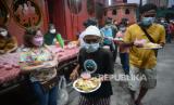 Warga membawa hidangan berbuka puasa di Vihara Dharma Bakti, Petak Sembilan, Jakarta, Kamis (7/4/2022). Vihara Dharma Bakti kembali menggelar buka puasa bersama dengan menyediakan sekitar 200 porsi untuk warga muslim di kawasan tersebut guna mempererat persaudaraan dan toleransi antarumat beragama. Republika/Thoudy Badai (FOTO : Republika/Thoudy Badai)