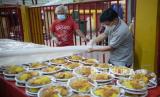 REPUBLIKA.CO.ID, JAKARTA -- Panitia menyiapkan hidangan berbuka puasa di Vihara Dharma Bakti, Petak Sembilan, Jakarta, Kamis (7/4/2022). Vihara Dharma Bakti kembali menggelar buka puasa bersama dengan menyediakan sekitar 200 porsi untuk warga muslim di kawasan tersebut guna mempererat persaudaraan dan toleransi antarumat beragama.