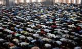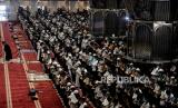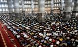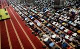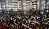 Jamaah melaksanakan ibadah Shalat Jumat di Masjid Istiqlal, Jakarta, Jumat (8/4/2022). Masjid Istiqlal kembali menggelar shalat jumat berjamaah pada minggu pertama di bulan Ramadhan 1443 Hijriah dengan meniadakan aturan jaga jarak dalam shaf shalat, namun setiap pengunjung wajib menggunakan masker. (FOTO : Republika/Thoudy Badai)