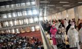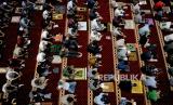 Masjid Istiqlal melaksanakan sholat Jumat dengan kembali merapatkan shaf sholat..