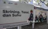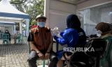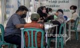 Sejumlah warga menjalani pemeriksaan kesehatan sebelum disuntik vaksin Covid-19 saat pelaksanaan vaksinasi Covid-19 massal di Taman Dewi Sartika, Jalan Wastukencana, Kota Bandung, Jumat (8/4/2022). Dinas Kesehatan (Dinkes) Kota Bandung mencatat hingga pekan pertama Ramadhan 2022, vaksinasi Covid-19 lanjutan (booster) di Kota Bandung telah mencapai 24,6 persen atau 480.117 orang dan ditargetkan mencapai angka 30 persen pada akhir April 2022. Foto: Republika/Abdan Syakura (FOTO : REPUBLIKA/ABDAN SYAKURA)