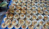 Ratusan piring bubur sayur untuk buka bersama di Masjid Sabilurrosyaad, Kauman, Bantul, Yogyakarta, Jumat (8/4/2022). Setiap Ramadhan Masjid Sabilurrosyaad selalu membuat takjil khusus berbuka puasa yakni bubur sayur. Menu berbuka dengan bubur dengan krecek, telur, dan mi lodeh menjadi tradisi turun-temurun. Khusus setiap Jumat menu yang dihidangkan lebih banyak, hampir 300 porsi dan warga yang ikut berbuka di masjid juga lebih banyak. (FOTO : Wihdan Hidayat / Republika)