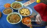 Menu bubur sayur untuk buka bersama di Masjid Sabilurrosyaad, Kauman, Bantul, Yogyakarta, Jumat (8/4/2022). Setiap Ramadhan Masjid Sabilurrosyaad selalu membuat takjil khusus berbuka puasa yakni bubur sayur. Menu berbuka dengan bubur dengan krecek, telur, dan mi lodeh menjadi tradisi turun-temurun. Khusus setiap Jumat menu yang dihidangkan lebih banyak, hampir 300 porsi dan warga yang ikut berbuka di masjid juga lebih banyak. (FOTO : Wihdan Hidayat / Republika)