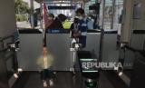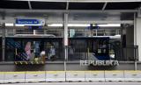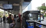 REPUBLIKA.CO.ID, JAKARTA -- Calon penumpang bersiap menaiki bus TransJakarta di Halte Bundaran HI, Jakarta, Ahad (10/4/2022).