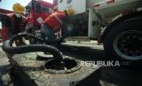 Petugas melakukan bongkar BBM di SPBU 44 521 13 Cabawan, Kota Tegal, Jawa Tengah, Ahad (10/4/2022). Sebanyak 27 SPBU di Kabupaten Tegal dan lima SPBU di Kota Tegal telah menerapkan aturan maksimal pembelian BBM Subsidi jenis biosolar sesuai ketentuan SK BPH Migas yaitu maksimal pembelian untuk kendaraan bermotor perseorangan roda empat 60 liter biosolar per hari, kendaraan bermotor umum angkutan orang atau barang roda empat maksimal 80 liter Biosolar per hari sedangkan kendaraan bermotor umum angkutan orang atau barang roda enam atau lebih mendapat Biosolar maksimal 200 liter per hari. Penyaluran di daerah Tegal dan sekitarnya tampak berlangsung lancar dan kondusif. (FOTO : ANTARA/Oky Lukmansyah)