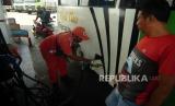 REPUBLIKA.CO.ID, TEGAL -- Angkutan umum melakukan pengisian BBM di SPBU 44 521 13 Cabawan, Kota Tegal, Jawa Tengah, Ahad (10/4/2022).
