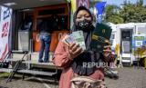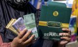 Warga menunjukkan uang pecahan kecil usai melakukan penukaran di Kantor Perwakilan Bank Indonesia Provinsi Jawa Barat, Jalan Braga, Kota Bandung, Senin (11/4/2022). Bank Indonesia Jawa Barat bekerja sama dengan 14 bank menyelenggarakan layanan penukaran uang kecil. Hal itu bertujuan untuk memperluas daya jangkau dan penyebaran uang pecahan kecil, serta mengantisipasi peningkatan kebutuhan uang rupiah yang meningkat hingga Rp19,26 triliun pada periode Ramadhan dan Idul Fitri 2022. (FOTO : REPUBLIKA/ABDAN SYAKURA)