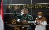 Komisioner Komnas HAM Choirul Anam menyampaikan keterangan kepada wartawan terkait hasil pemantauan dan penyelidikan kemantian dr.Sunardi tersangka tindak pidana terorisme, pasca penangkapan detasemen khusus 88 anti teror polda di Kantor Komnas HAM, Jakarta, Senin (11/4/2022). Berdasarkan hasil pemantauan dan penyelidikan, Komnas HAM mengukapkan dengan melihat prinsip legalitas, nesesitas dan kehati-hatian dalam proses penangkapan dr. Sunardi sampai kematian sudah sesuai dengan prosedur dan tidak terdapat pelanggaran hak asasi manusia.Prayogi/Republika. (FOTO : Prayogi/Republika.)