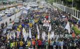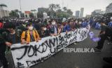 REPUBLIKA.CO.ID,JAKARTA -- Badan Eksekutif Mahasiswa Seluruh Indonesia (BEM SI) menggelar aksi di depan Gedung DPR, Kompleks Parlemen, Jakarta. Dalam aksi hari ini, terdapat empat tuntutan yang akan disampaikan kepada anggota dewan.