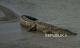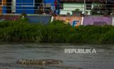 REPUBLIKA.CO.ID, PALU -- Seekor buaya liar berjemur di gundukan pasir di Sungai Palu, Palu, Sulawesi Tengah, Senin (11/4/2022). Keberadaan buaya liar yang jumlahnya diperkirakan puluhan ekor dan menjadikan sungai itu sebagai habitatnya mulai meresahkan warga karena kerap kali naik ke sekitar pemukiman dan bahkan menyerang warga. Warga berharap agar pihak yang berkompeten dapat menangkarkannya atau mengendalikan populasinya sehingga tidak membahayakan.