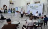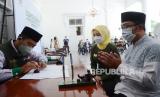 REPUBLIKA.CO.ID, BANDUNG -- Gubernur Jawa Barat Ridwan Kamil (Emil) bersama istri, Atalia Praratya melakukan Ijab saat menunaikan pembayaran zakat kepada Badan Amil Zakat Nasional (Baznas) di Gedung Pakuan, Kota Bandung, Selasa (12/4). Dalam acara bertajuk Cinta Zakat Menyejahterakan Umat tersebut, Emil meminta kepada Baznas Jawa Barat untuk menginisiasi pengelola zakat lainnya untuk turut serta dalam membantu mengentaskan kemiskinan ekstrem di Jawa Barat.