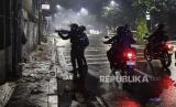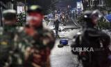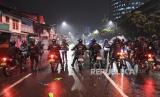 REPUBLIKA.CO.ID, JAKARTA -- Sejumlah personel Brimob Polri berusaha membubarkan pengunjuk rasa saat terjadinya kericuhan di kawasan Pejompongan, Jakarta, Senin (11/4/2022).