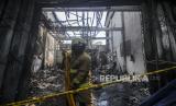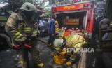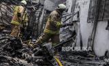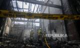 REPUBLIKA.CO.ID, JAKARTA -- Petugas usai melakukan pendinginan pasca kebakaran di Jalan Warakas I, Tanjung Priok, Jakarta, Selasa (12/4/2022). Kebakaran yang melanda sebuah bengkel motor tersebut diduga berasal dari korsleting listrik hingga mengakibatkan lima orang meninggal dunia karena terkunci dari luar dan tak bisa menyelamatkan diri.