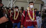 REPUBLIKA.CO.ID, TANGERANG -- Sejumlah pemain dan ofisial tim sepak bola Atletico Madrid U-18 tiba di Terminal 3 Bandara Internasional Soekarno Hatta, Tangerang, Banten, Selasa (12/4/2022).