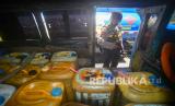 Petugas kepolisian mengecek mobil minibus berisi jeriken BBM yang diamankan karena terlibat kasus penyalahgunaan pengangkutan BBM bersubsidi jenis biosolar, di Mapolda Sumatera Barat, di Padang, Selasa (12/4/2022). Ditreskrimsus Polda Sumbar mengamankan satu tersangka penyalahgunaan pengangkutan BBM bersubsidi untuk diperdagangkan kembali, dengan barang bukti diantaranya satu unit mobil tangki berisi 5.000 liter biosolar, 15 jeriken biosolar ukuran 35 liter, dan satu buah baby tank berisi 1.600 liter biosolar. (FOTO : Antara/Iggoy el Fitra)
