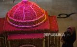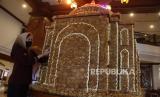 REPUBLIKA.CO.ID, SEMARANG -- Karyawan menyelesaikan pembuatan miniatur masjid berbahan makanan tradisional kue kembang goyang di The Sunan Hotel, Solo, Jawa Tengah, Selasa (12/4/2022). Miniatur masjid berukuran diameter 190 cm dan tinggi 200 cm tersebut dibuat dengan menggunakan 20 kilogram kue kembang goyang guna memeriahkan bulan Ramadhan.