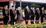 REPUBLIKA.CO.ID,JAKARTA -- Komisioner Komisi Pemilihan Umum (KPU) yang baru dilantik Yulianto Sudrajat, Parsadaan Harahap, Betty Epsilon Idroos, Hasyim Asy'ari, Idham Holik, Mochammad Afifuddin, dan August Mellaz tiba di Gedung KPU, Jakarta, Selasa (12/4/2022).