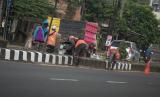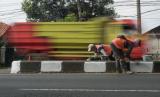 REPUBLIKA.CO.ID, BATANG -- Sejumlah pekerja mengecat median jalan di jalur pantura Kabupaten Batang, Jawa Tengah, Selasa (12/4/2022). Pengecatan median jalan untuk memberikan keamanan dan kenyamanan bagi pengendara yang melintas terlebih pada malam hari saat arus mudik dan balik Lebaran mendatang.