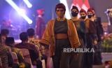 Sejumlah peragawati memeragakan busana dengan kain tradisional khas Minangkabau dalam pembukaan Gerakan Nasional (Gernas) Bangga Buatan Indonesia (BBI) di Bukittinggi, Sumatra Barat, Selasa (12/4/2022). Pemerintah menargetkan Gernas BBI dapat mengakselerasi transformasi digital UMKM, memperkuat kelangsungan usaha, percepatan perputaran siklus ekonomi, mendorong semangat bangga produk lokal, dan mendorong (FOTO : ANTARA/Aditya Pradana Putra)